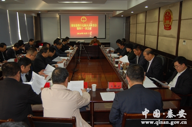10月17日,秦安縣第十七屆人大常委會召開第四十一次會議,會議由縣人大常委會主任郭海軍主持,縣人大常委會副主任劉小秦、陳秦生、張雙喜、楊尚武、宋捷、張來祿及各位委員參加會議?h政府副縣長于劍鋒,縣法院代院長張保定,縣檢察院檢察長劉曦,縣政府辦、發(fā)改局、財政局負(fù)責(zé)人,不是組成人員的縣人大常委會辦公室及各工委負(fù)責(zé)人列席了會議。