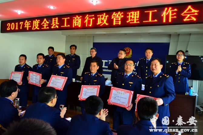 近日,秦安縣2017年度全縣工商行政管理工作會(huì)議召開(kāi),會(huì)議的主要任務(wù)是貫徹落實(shí)省、市工商行政管理工作會(huì)議精神,總結(jié)2016年各項(xiàng)工作完成情況,表彰先進(jìn),安排部署2017年重點(diǎn)工作?h委常委、統(tǒng)戰(zhàn)部部長(zhǎng)扇忠瑜,縣政府副縣長(zhǎng)丁遲成參加會(huì)議并講話(huà),縣工商行政管理領(lǐng)導(dǎo)班子成員、機(jī)關(guān)和各工商所所長(zhǎng)參加會(huì)議。