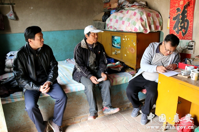 走訪過程中,校領(lǐng)導(dǎo)和200余名幫扶干部分成四個組,對邵咀村、贠王村、寺咀村、馬峽村的結(jié)對幫扶聯(lián)系戶進(jìn)行了走訪!澳依镉袔卓谌?經(jīng)濟(jì)收入主要靠什么?孩子上幾年級?去年收入多少?支出多少?現(xiàn)有的住房是什時候修建的?目前生產(chǎn)生活中的主要困難是什么……”走訪中,各位幫扶干部與貧困戶面對面坐在一起,一邊詢問一邊認(rèn)真作著記錄,同時鼓勵貧困戶要堅定信心,相信在各級各部門幫扶的基礎(chǔ)上,結(jié)合郭嘉鎮(zhèn)的產(chǎn)業(yè)優(yōu)勢發(fā)展生產(chǎn),一定能夠改變貧困面貌,早日過上幸福生活,并表示有困難和問題時要隨時與他們聯(lián)系。