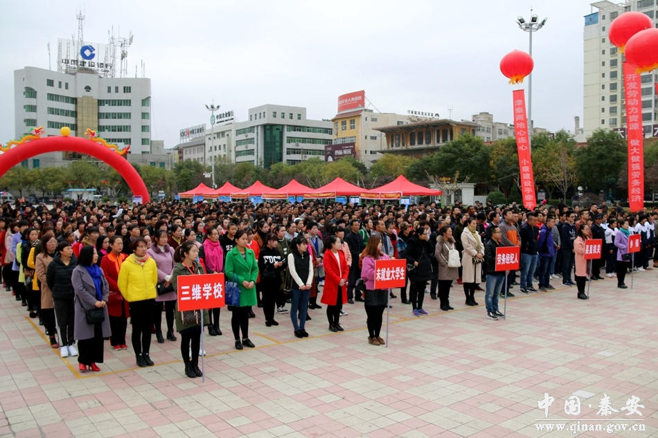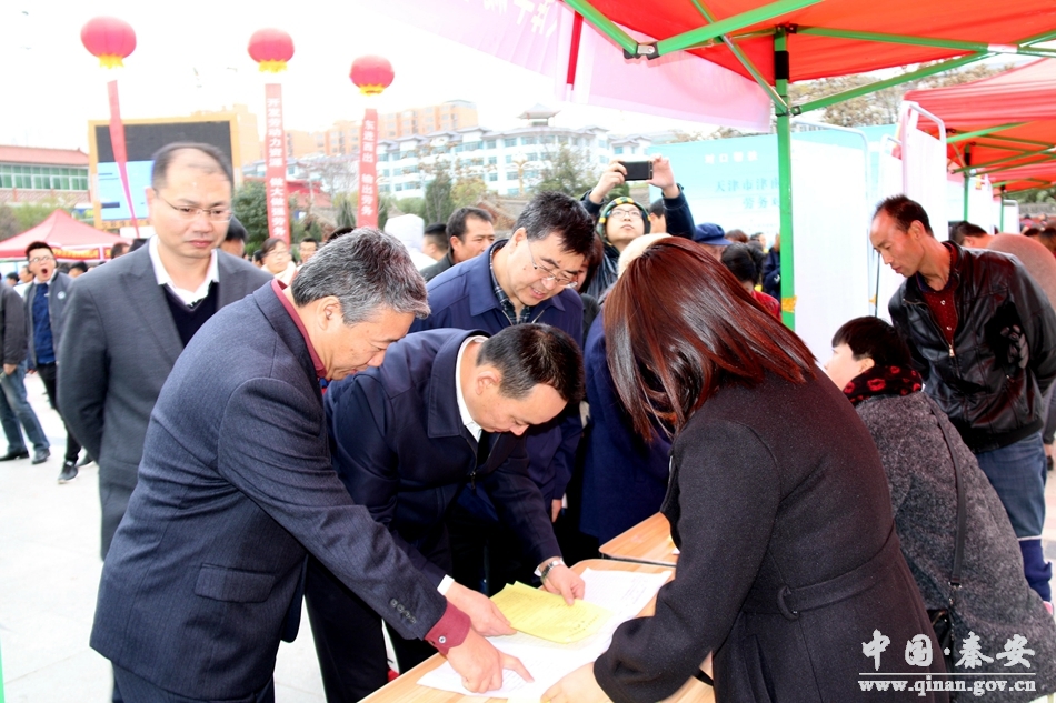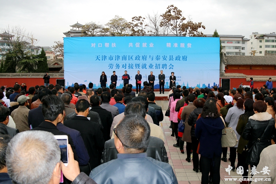 為認(rèn)真貫徹落實(shí)津南區(qū)人民政府和秦安縣人民政府簽訂的《實(shí)施攜手奔小康行動(dòng)協(xié)議》精神,全面推動(dòng)天津市津南區(qū)與秦安縣就業(yè)扶貧和勞務(wù)對接工作順利開展,實(shí)現(xiàn)貧困人員就業(yè)與再就業(yè),11月9日,由天津市津南區(qū)政府與秦安縣政府主辦的“天津市津南區(qū)政府與秦安縣政府勞務(wù)對接暨就業(yè)招聘會(huì)”在秦安縣興國文化廣場順利召開。