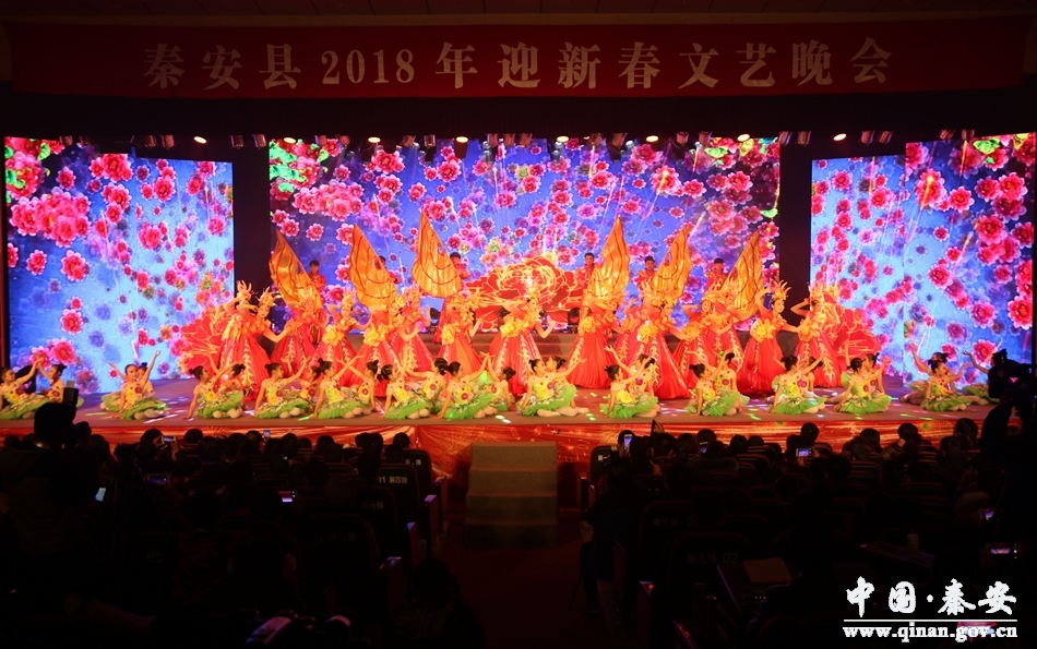 秦安縣2018年迎新春文藝晚會(huì)認(rèn)真貫徹黨的十九大精神,以“啟航秦安”為主題,集舞蹈、歌曲、相聲、小品、秦腔、武術(shù)、詩朗誦等不同藝術(shù)形式于一體,將獨(dú)具特色的秦安大地灣文化、女媧文化、成紀(jì)李氏文化和民俗文化等融入晚會(huì)當(dāng)中,并對(duì)非物質(zhì)文化遺產(chǎn)秦安小曲、蠟花舞、哇嗚、殼子棍等進(jìn)行了新編,用藝術(shù)的視角展現(xiàn)了秦安改革發(fā)展和文化建設(shè)取得的輝煌成就,展現(xiàn)了人民群眾蒸蒸日上的幸福生活,展示了全縣人民團(tuán)結(jié)奮進(jìn)、銳意進(jìn)取的精神風(fēng)貌,營(yíng)造了熱烈喜慶、歡樂祥和、昂揚(yáng)振奮的節(jié)日氣氛,為全縣人民送上了一道豐盛精美的文化大餐。演出現(xiàn)場(chǎng),天水廣播電視臺(tái)和秦安廣播電視臺(tái)進(jìn)行了全程拍攝。