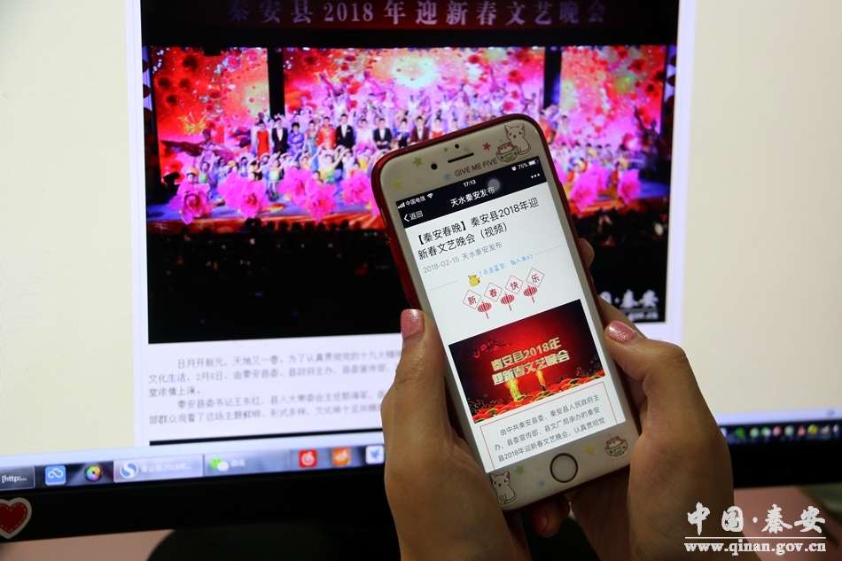 2月8日(臘月二十三)晚,由中共秦安縣委、秦安縣人民政府主辦,縣委宣傳部、縣文化廣播影視局承辦的2018年迎新春文藝晚會(huì)在縣行政辦公中心二樓禮堂濃情上演。從臘月二十九日開始至正月十四日,晚會(huì)實(shí)況分別在秦安縣電視臺(tái),天水廣播電視臺(tái)公共頻道、綜合頻道分時(shí)段高頻次播出,同時(shí)在“天水秦安發(fā)布”和“天水在線”微信公眾號(hào)上進(jìn)行了發(fā)布,據(jù)不完全統(tǒng)計(jì),縣內(nèi)外收看春晚的市民和網(wǎng)民總數(shù)超過百萬。許多人稱贊今年的秦安春晚有思想、有情懷、有共鳴,聚焦新風(fēng)尚、振奮新精神、激蕩新夢(mèng)想,令人耳目一新、倍感親切。