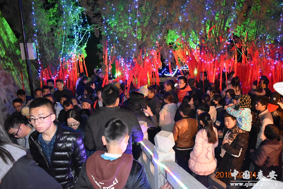 2月24日(農歷正月初九)晚,秦安縣鳳山景區(qū)內燈光閃爍,人頭攢動。當晚,各式花燈色彩斑斕,爭奇斗艷,將景區(qū)裝扮得流光溢彩,不少市民走出家門,祈福、賞花燈、猜燈謎、品年味兒。與往年相比,今年燈展節(jié)儉不失喜氣,年味依然濃厚。