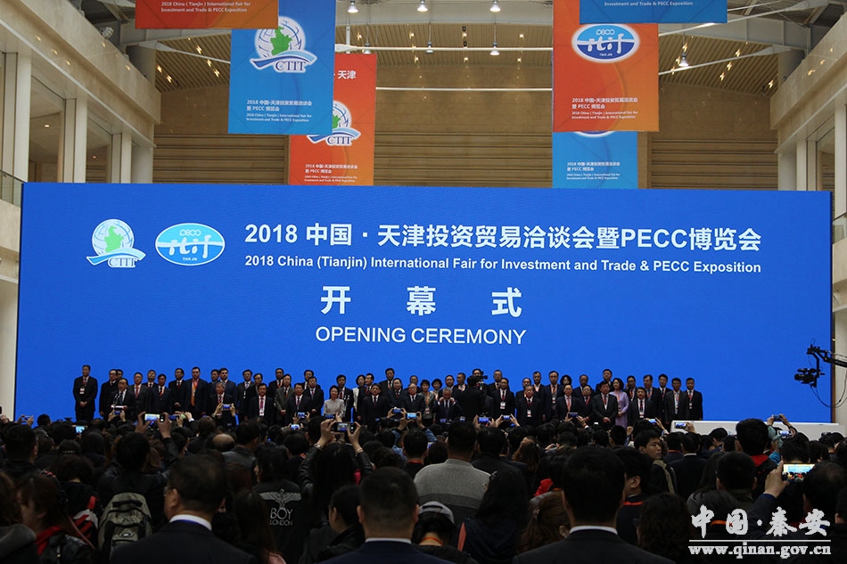 4月13日上午,2018中國•天津投資貿(mào)易洽談會暨PECC博覽會(簡稱2018津洽會暨PECC博覽會)在中國•天津梅江會展中心開幕,為期5天。天津市委書記李鴻忠、中聯(lián)辦副主任仇鴻、中國商業(yè)聯(lián)合會會長姜明,十一屆省政協(xié)副主席黃選平出席開幕式。天津市委副書記、市長張國清,商務(wù)部部長助理李成鋼,中國僑聯(lián)黨組書記、主席萬立駿分別致辭,天津市政協(xié)副主席高玉葆主持開幕式。市政協(xié)副主席逯克宗,市政府辦、招商局、商務(wù)局等部門負(fù)責(zé)人參加開幕式。