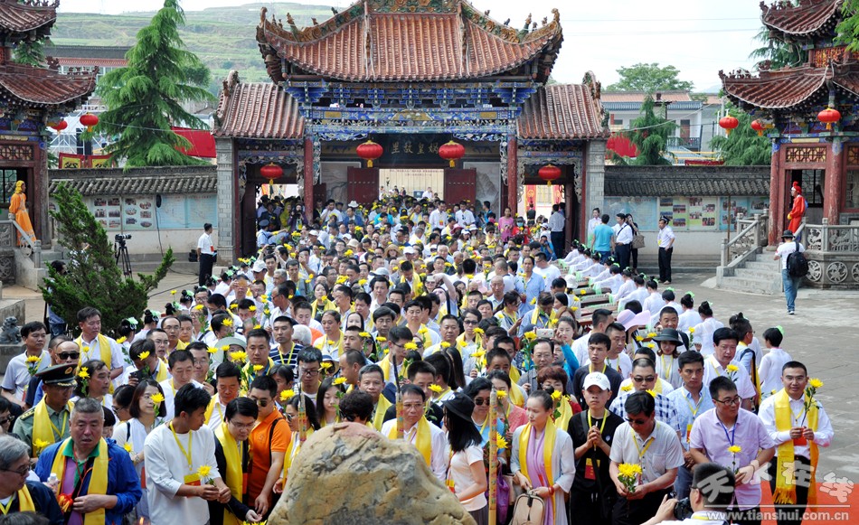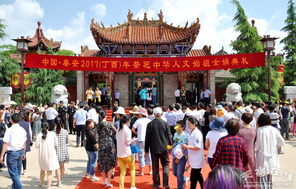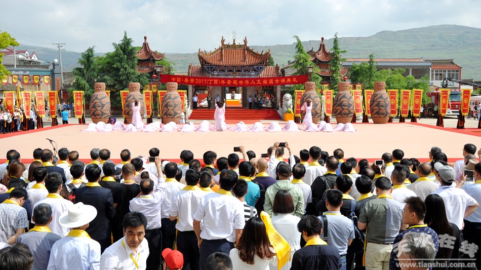 由天水女媧文化研究會和隴城鎮(zhèn)女媧祠管理委員會主辦的秦安縣2018(戊戌)年祭祀中華人文始祖女媧典禮,將于6月21日上午在隴城鎮(zhèn)女媧祭祀廣場隆重舉行。祭祀共有肅立奏樂、敬獻三牲、擊鼓鳴鐘、恭讀祭文、鞠躬敬祭、樂舞告祭、圣水祈福、敬獻花籃和謁祠拜祖7項議程。屆時將有天水伏羲文化研究會、河南淮陽太昊先天文化研究會、河北涉縣女媧文化研究會、四川江油李白研究會、清水軒轅文化研究會,愛心慈善企業(yè)家代表、秦安籍外地企業(yè)家、創(chuàng)業(yè)人員及離退休人員代表,隴城鎮(zhèn)媧皇村、鳳尾村、略陽村村民代表等參加女媧祭祀典禮。