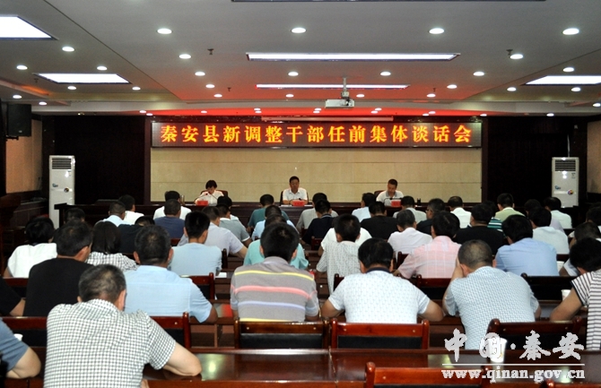 7月28日,秦安縣召開新調(diào)整干部任前集體談話會?h委書記王東紅,縣委常委、紀委書記、縣監(jiān)察委員會主任鄧曉東,縣委常委、組織部長肖江,以及新任職干部約70人參加會議。