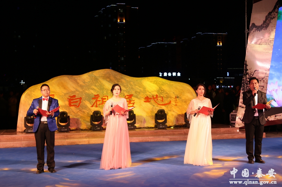 晚會(huì)伊始,縣委書記王東紅作了致辭。他說(shuō),秦安歷史悠久,人杰地靈,是人類始祖伏羲、女媧的誕生地和中華民族重要的發(fā)祥地之一,也是詩(shī)仙李白的祖居地。近年來(lái),縣委、縣政府依托縣域豐富的文化資源,大力加強(qiáng)文化建設(shè),加快實(shí)施大地灣文化旅游產(chǎn)業(yè)園、成紀(jì)李氏祖脈文化園、秦安小曲保護(hù)利用設(shè)施等項(xiàng)目,舉辦大地灣文化國(guó)際學(xué)術(shù)論壇、女媧文化旅游節(jié)等活動(dòng),著力打造提升秦安特色文化品牌。