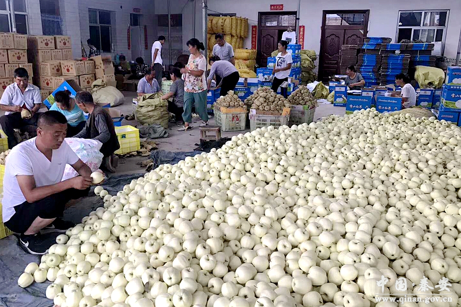 近年來,秦安縣依托獨特的氣候、土壤條件以及生態(tài)優(yōu)勢,著力推進蘋果規(guī)模化生產(chǎn)。至2017年底,全縣蘋果種植面積61.37萬畝,蘋果產(chǎn)量71.38萬噸,產(chǎn)值突破23億元,蘋果產(chǎn)業(yè)已成為當?shù)剞r(nóng)民收入的主要來源和全縣農(nóng)業(yè)經(jīng)濟的主導產(chǎn)業(yè)。