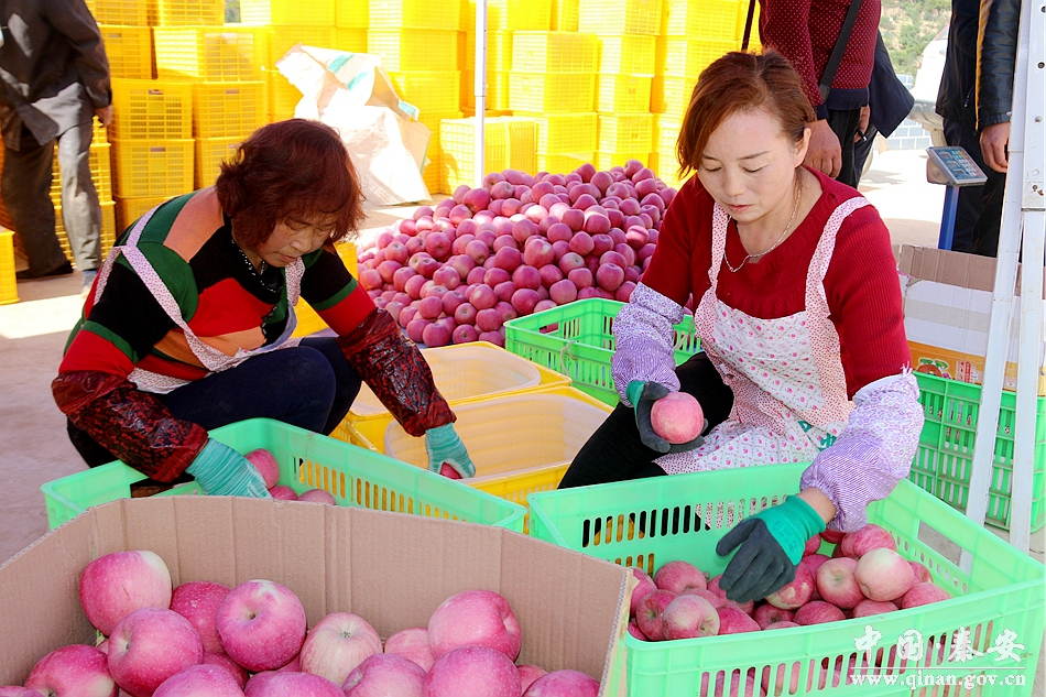 國慶期間,在秦安縣的大小蘋果收購攤點上,到處是一派火熱的收購場面。來自四面八方的客商,將一筐筐白如雪、紅似霞的蘋果搬運上車,銷往全國各地。此次此刻,秦安大地變成了買賣蘋果的海洋。一年的汗水終于成就了輝煌,果農(nóng)們豐收的喜悅登上了眉梢。