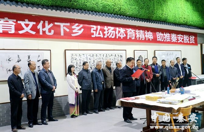 7日上午,省體育文化下鄉(xiāng)扶貧書畫活動(dòng)在大地灣文化藝術(shù)館舉行。省體育文化發(fā)展促進(jìn)會(huì)秘書長(zhǎng)趙乾全主持活動(dòng)儀式。秦安縣委常委、政法委書記楊喜春致辭,并代表秦安縣委、縣人大、縣政府、縣政協(xié),向現(xiàn)場(chǎng)的各位老領(lǐng)導(dǎo)和嘉賓朋友表示熱烈歡迎和衷心感謝。他說(shuō),適逢國(guó)慶佳節(jié),省老領(lǐng)導(dǎo)、藝術(shù)家們心系秦安,關(guān)心秦安的脫貧攻堅(jiān)和體育文化事業(yè),這是實(shí)施體育扶貧工程的具體行動(dòng),也是秦安縣體育文化扶貧工作中的一件大事。他希望全縣上下以本次活動(dòng)為契機(jī),進(jìn)一步豐富廣大人民群眾的體育文化生活,積極營(yíng)造良好的脫貧攻堅(jiān)社會(huì)輿論氛圍,為秦安人民群眾脫貧致富增添強(qiáng)大思想動(dòng)力。