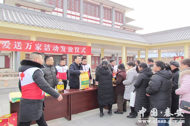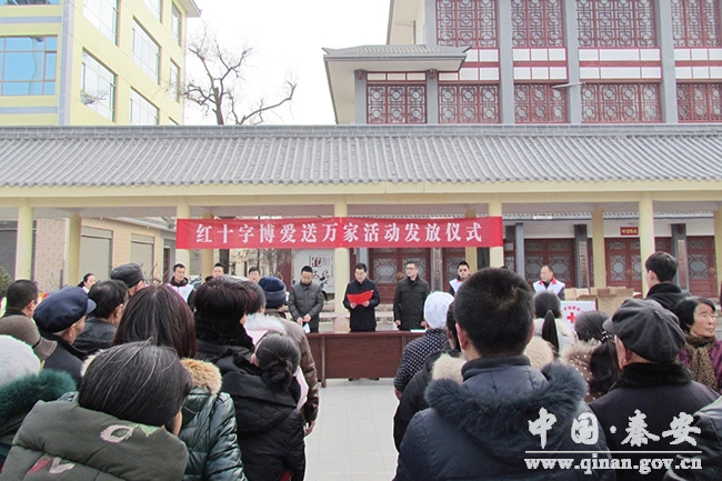 為進(jìn)一步幫助全縣困難群眾解決實(shí)際困難,讓他們過上一個(gè)歡樂、祥和的新春佳節(jié),1月29日,秦安縣舉行紅十字會(huì)博愛送萬家活動(dòng)啟動(dòng)儀式,縣政府副縣長于劍鋒,縣衛(wèi)計(jì)局、紅十字會(huì)等相關(guān)部門單位負(fù)責(zé)人參加。