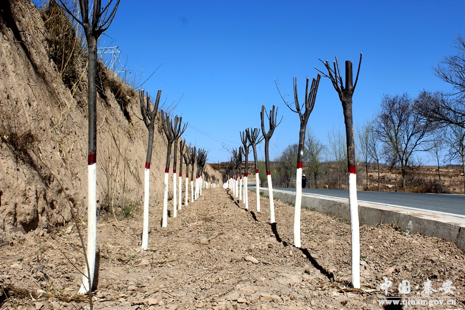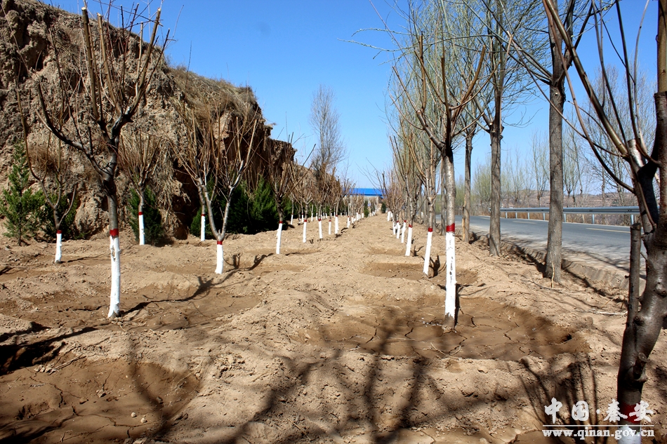 目前,已圓滿完成X462線新補植紅葉碧桃、紅葉李和國槐等樹種15公里1萬余株,新植墩灣村至赤山村行道樹6公里3000余株,鳳山延伸段秦洼片區(qū)造林綠化80畝。為保證苗木成活率和栽植質(zhì)量,各村組織黨員群眾2000余人次,按照深度0.6米,直徑0.5米,株距1.5米的標(biāo)準(zhǔn)統(tǒng)一調(diào)用挖機開挖豐產(chǎn)坑,栽植時保持土球完整,苗木端正,填土夯實,魚鱗坑保水,樹盤平整,覆土防止板結(jié),每個環(huán)節(jié)高標(biāo)準(zhǔn)嚴(yán)要求,保證了栽植質(zhì)量。按照村域分段負(fù)責(zé),各村對苗木統(tǒng)一放線栽植,調(diào)用三輪澆水車輛21臺,綠化澆水車1臺,按照1:5000的比例兌入根補液生根;睿龅疆(dāng)天植樹當(dāng)天澆透,確保栽一棵澆一棵,保證了苗木成活率。同時,調(diào)用抽水機6臺,確定12名專人對鳳山景區(qū)延伸段連續(xù)澆水30多天,已全部完成澆灌任務(wù)。