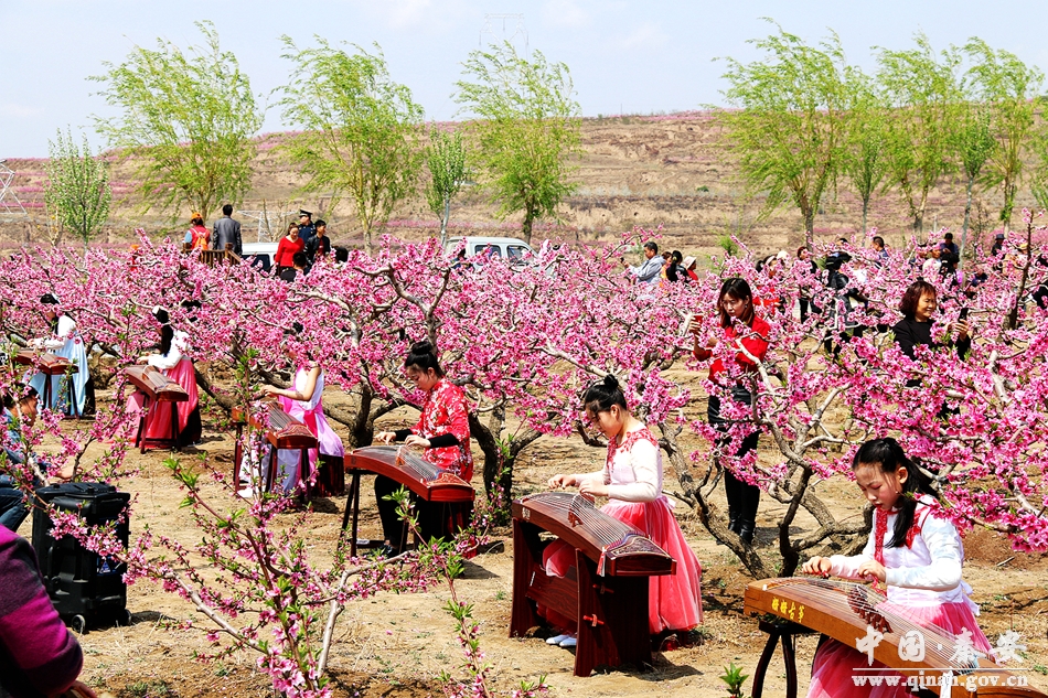 (秦安桃花競相綻放 游人聞訊紛至沓來)