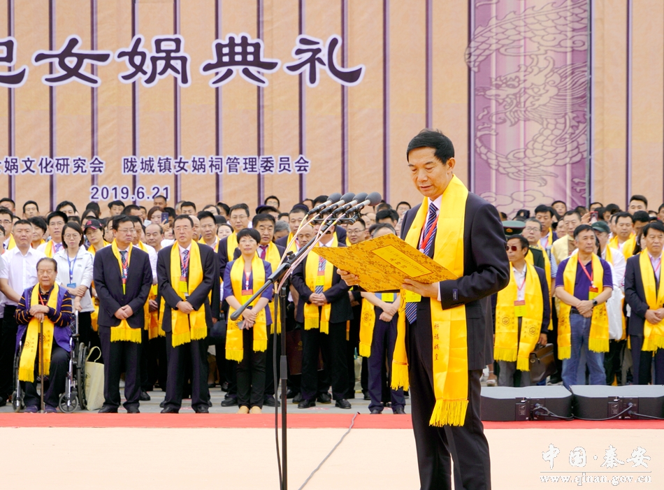(市委常委、宣傳部長張建杰宣布“中國·秦安2019(己亥)年祭祀中華人文始祖女媧典禮開始)