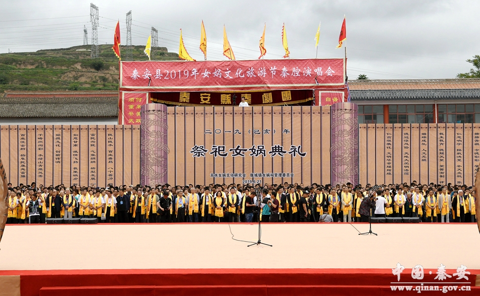 6月21日,秦安縣隴城鎮(zhèn)女媧祭祀廣場上,幢幡悠悠、鐘鼓喈喈,氣勢恢弘、莊嚴(yán)肅穆。由天水女媧文化研究會、隴城鎮(zhèn)女媧祠管理委員會主辦的秦安縣2019(己亥)年祭祀中華人文始祖女媧典禮在這里隆重舉行。來自省內(nèi)外的媧皇兒女懷著無比虔誠的赤子之心齊聚于此,祭祖謁宗,共同緬懷人文始祖女媧的豐功偉績。