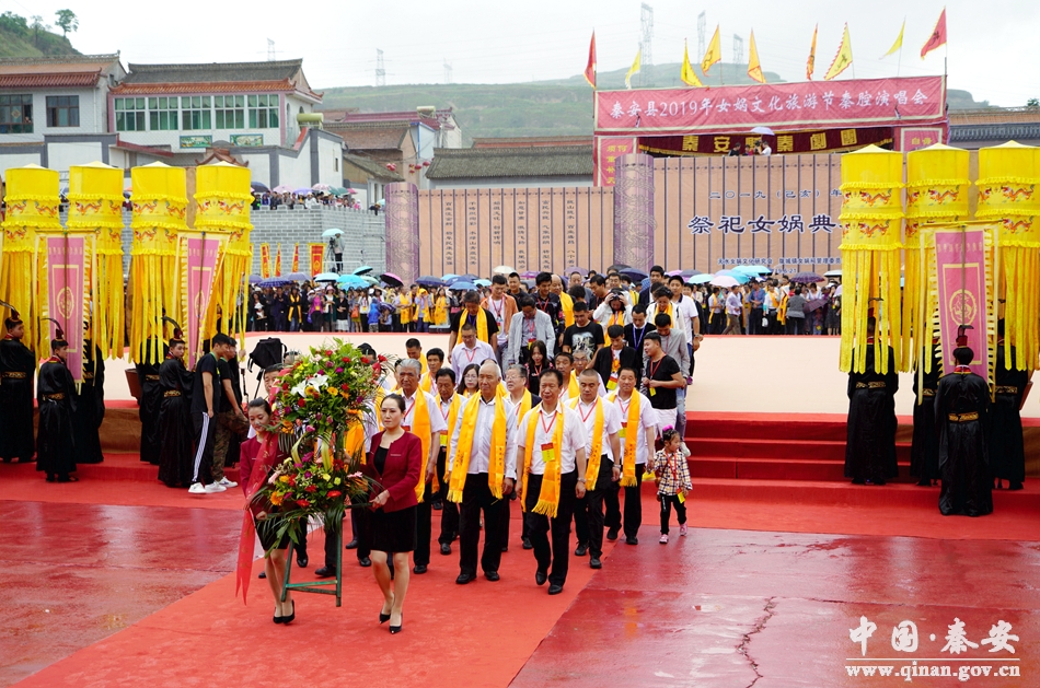 參加祭祀典禮的嘉賓有甘肅省軍區(qū)原副政委、天水女媧文化研究會名譽(yù)會長楊耀春,深圳市政協(xié)原副秘書長張國英,甘肅省政府參事王歡祥,原蘭州軍分區(qū)政委李長生,市委常委、宣傳部長張建杰,副市長王燕, 市政協(xié)副主席唐宏偉,秦安縣委書記王東紅,縣人大常委會主任郭海軍,縣委副書記、縣長程江芬,縣政協(xié)主席、天水女媧文化研究會會長楊仁義以及縣四大組織在家領(lǐng)導(dǎo);縣退休老干部代表,秦安籍縣外離退休專家,秦安籍企業(yè)家代表,臺北市甘肅同鄉(xiāng)會,全國金石拓片展、紀(jì)念安維峻研討會專家學(xué)者代表,天平高速建設(shè)者代表,精準(zhǔn)扶貧戰(zhàn)線干部群眾代表,各鎮(zhèn)、縣直各部門、駐秦各單位干部職工代表,隴城鎮(zhèn)及社會各界群眾代表。
