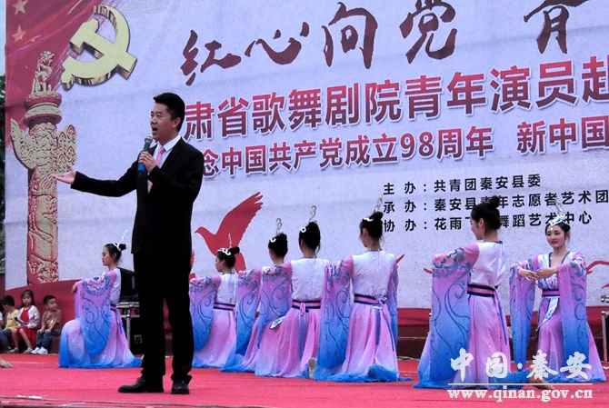 為了紀念中國共產黨成立98周年,6月29日,“青春聚力 紅心向黨”--甘肅省歌舞劇院青年演員藝術交流演出活動在縣興國文化廣場舉辦。