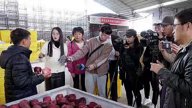 采訪團(tuán)先后來到西川鎮(zhèn)折橋村、果源果業(yè)和王尹鎮(zhèn)郝康村蘋果收購點(diǎn),以果農(nóng)、客商、縣果業(yè)局工作人員、記者等不同視角,對客商收購、裝車運(yùn)輸、進(jìn)庫儲(chǔ)藏等場面進(jìn)行現(xiàn)場采訪、網(wǎng)絡(luò)直播,并借助快手、今日頭條、微博等平臺(tái),推出秦安蘋果宣傳圖文和小視頻,拓寬秦安蘋果銷售渠道,提高秦安蘋果知名度和影響力。