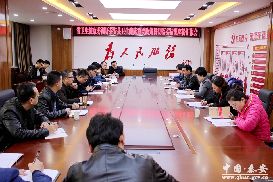 在聽取匯報后,調研組對秦安縣衛(wèi)生健康方面所做的工作給予了充分肯定。同時要求秦安縣要緊緊圍繞國家和省上有關政策要求,全面推進醫(yī)改、提升基層醫(yī)療衛(wèi)生機構服務能力,加強基層醫(yī)療衛(wèi)生服務體系建設,讓更多的優(yōu)惠政策向基層傾斜,切實將我省衛(wèi)生健康重要政策貫徹落實到位,讓人們群眾享受更便捷優(yōu)質的醫(yī)療衛(wèi)生服務。