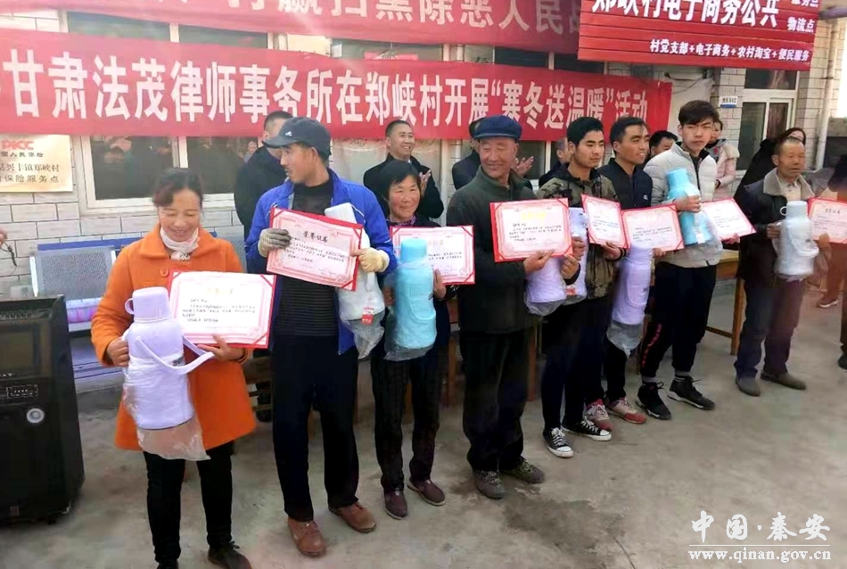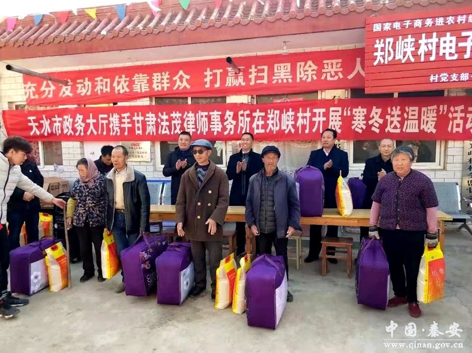 凜冽的寒風(fēng)擋不住關(guān)懷的腳步,深冬的嚴(yán)寒冷卻不了一顆顆送溫暖的心。12月11日,市政府政務(wù)大廳攜手甘肅法茂律師事務(wù)所在秦安縣興豐鎮(zhèn)鄭峽村開展“寒冬送溫暖”活動(dòng)。這次活動(dòng)主要對(duì)常駐在村60歲以上相對(duì)貧困的55位老人進(jìn)行了慰問,在隆冬時(shí)節(jié),給他們送去了溫暖,獻(xiàn)上了愛心,體現(xiàn)了幫扶單位和社會(huì)愛心企業(yè)對(duì)貧困村老人的真切關(guān)懷。