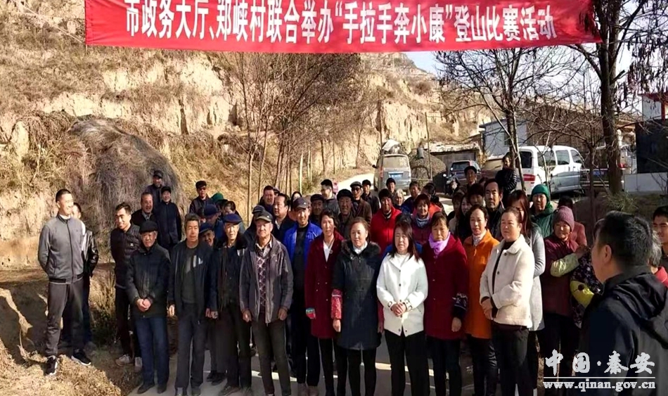 送溫暖活動(dòng)結(jié)束后,市政府政務(wù)大廳和鄭峽村委會(huì)還聯(lián)合舉辦了“手拉手奔小康”登山比賽活動(dòng)。開展這次登山比賽的目的是在脫貧攻堅(jiān)任務(wù)完成后,幫扶單位將會(huì)和聯(lián)系村群眾繼續(xù)攜手前行,不管道路多么艱辛,不管過程多么復(fù)雜,我們目標(biāo)不變、信心不減,一定要向幸福的小康生活前進(jìn),絕不能在小康的道路上落下1戶,剩下1人。