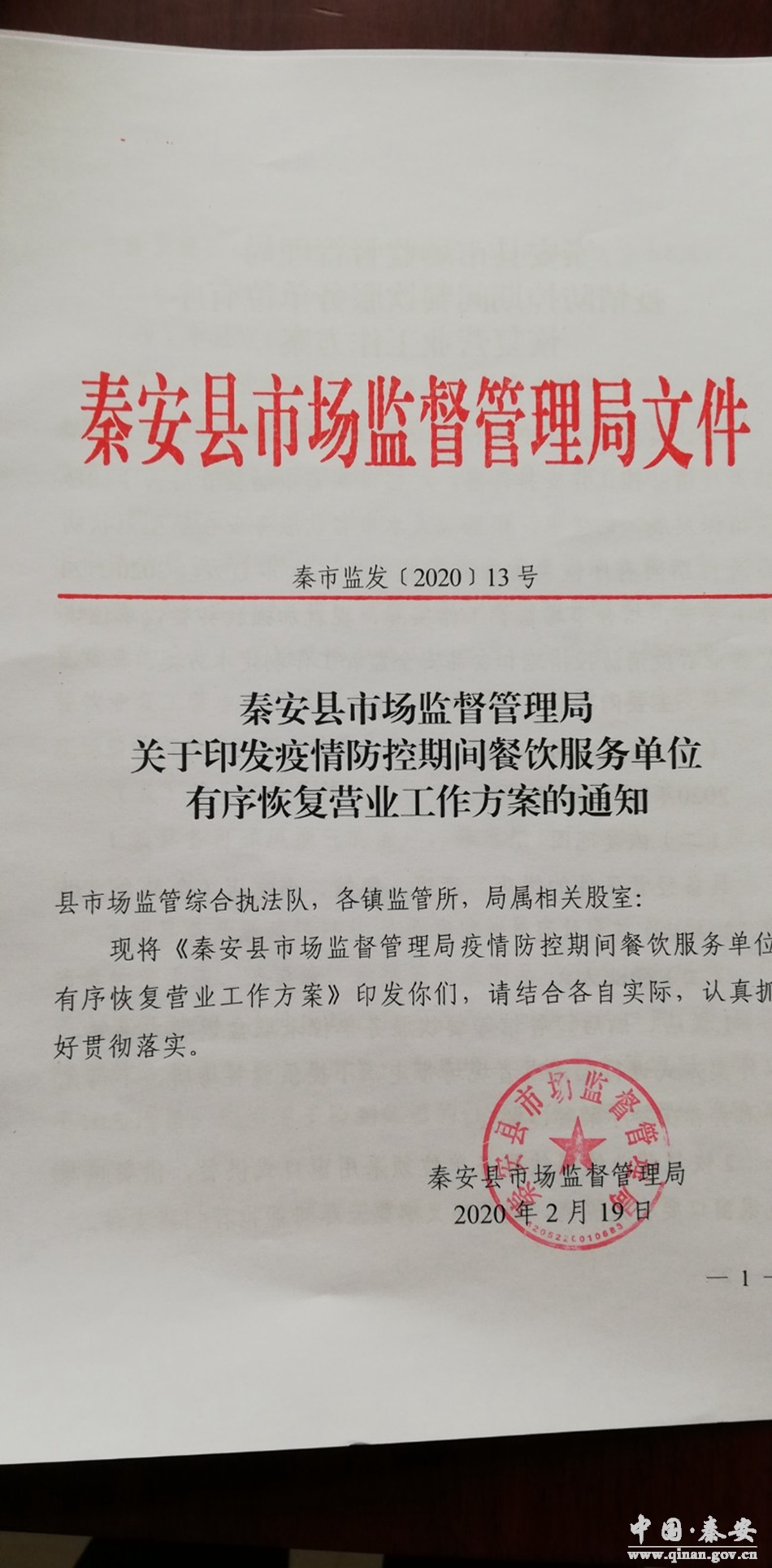 為認真貫徹落實中央和省、市、縣關于新型冠狀病毒感染肺炎疫情防控工作安排部署,嚴格落實省市場監(jiān)管局關于“防疫情保穩(wěn)定促發(fā)展”28條措施的要求,秦安縣市場監(jiān)管局第一時間召開專題會議,迅速研判、迅速落實,在抓好疫情防控的同時,積極回應餐飲企業(yè)期盼,堅持監(jiān)管和服務“兩手抓”,全力指導餐飲單位有序、穩(wěn)步復工營業(yè)。