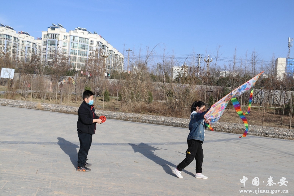 “我們好久都沒有出門了,今天天氣比較好,我們寫完作業(yè),舅舅就把我們帶出來到公園里玩一玩,放放風(fēng)箏!闭诜棚L(fēng)箏的秦安縣興國四小學(xué)生張佳琪說。
