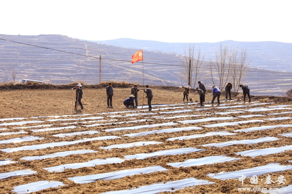 近日,在秦安縣中山鎮(zhèn)后溝村的地壟上,人頭攢動(dòng),村民有的拿著鐵鍬、有的拿著撅頭、有的拿著地膜棒子,或鏟土壓地膜,或掄起撅頭挖土,一派和諧、繁忙的春耕景象。