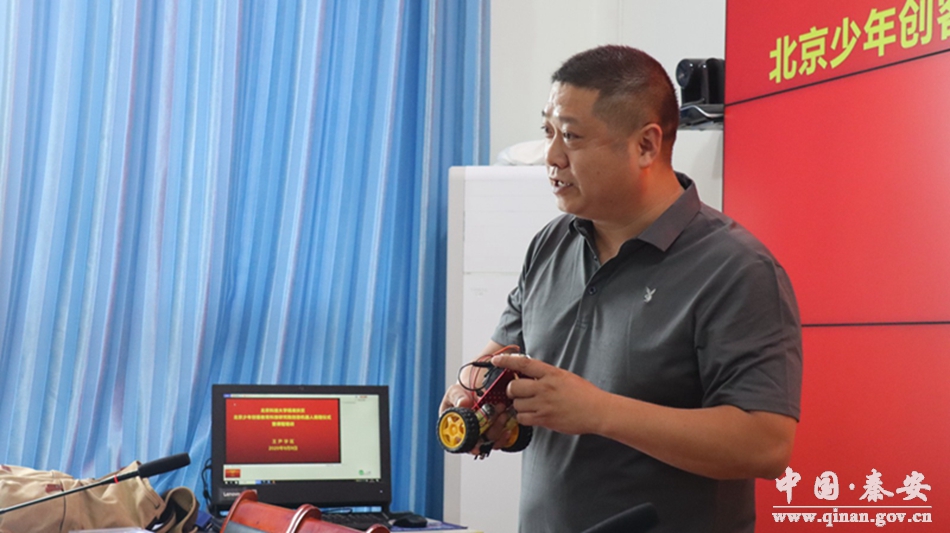 捐贈(zèng)儀式結(jié)束后,北京少年創(chuàng)客教育科技研究院院長曾勇通過理論講解和現(xiàn)場操作的方式,為參訓(xùn)教師進(jìn)行了創(chuàng)意機(jī)器人課程科普實(shí)驗(yàn)室培訓(xùn)。