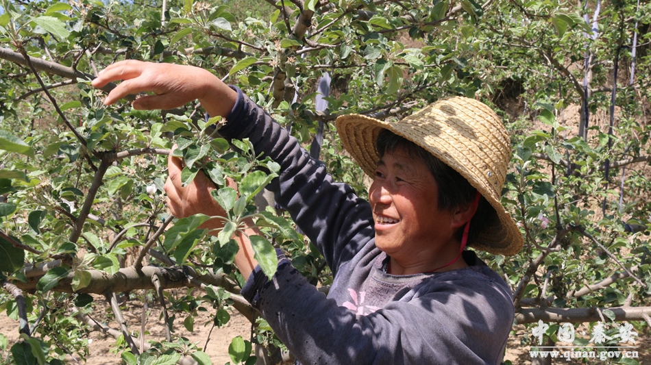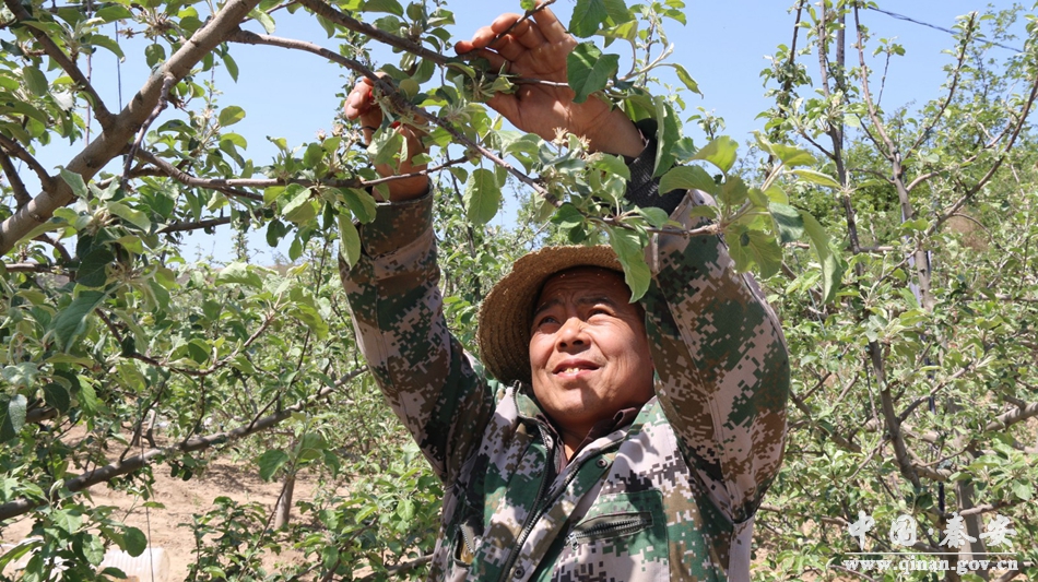 同樣,村民楊思中也正在地里忙碌,為了增加果品產(chǎn)量,提高果質(zhì),他和老伴正忙著給蘋果樹疏花,他對記者說:“家里種了4畝蘋果,今年雨水廣,蘋果花芽長得好,到秋天一定有個好收成!闭f著可預(yù)想到的增產(chǎn)豐收,楊思中臉上的笑容里是掩飾不住地喜悅。
