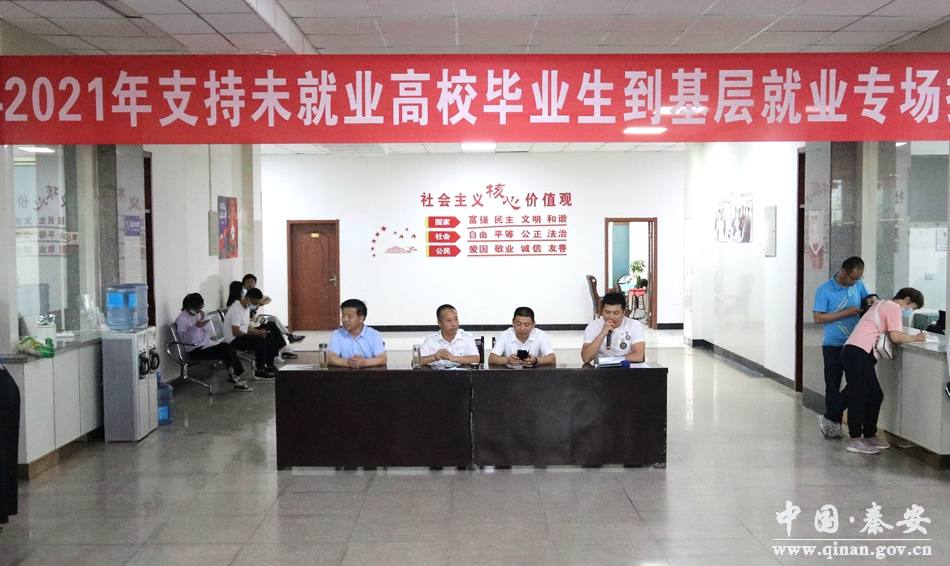 為全面貫徹黨中央和省市“六穩(wěn)”“六!敝卮鬀Q策部署,進(jìn)一步引導(dǎo)高校畢業(yè)生到基層單位就業(yè),落實(shí)2021年省市為民辦實(shí)事——支持未就業(yè)高校畢業(yè)生到企業(yè)就業(yè)項(xiàng)目。7月25日,由秦安縣人力資源和社會(huì)保障局主辦、秦安縣公共就業(yè)與人才服務(wù)中心承辦、秦安縣風(fēng)行網(wǎng)絡(luò)科技有限公司協(xié)辦的以“關(guān)愛(ài)大學(xué)生、攜手促就業(yè)”為主題的秦安縣2021年支持未就業(yè)高校畢業(yè)生到基層就業(yè)項(xiàng)目專場(chǎng)招聘會(huì)在秦安縣人社局舉行。