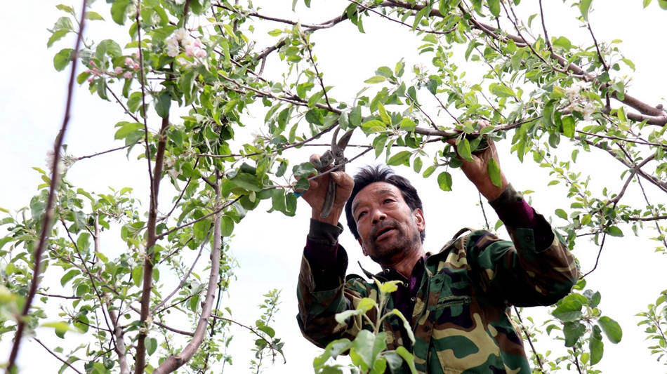 時(shí)下,穿行于安伏鎮(zhèn)麻灣村廣袤的山川田野間,到處是一派繁忙景象。在麻灣村果椒基地,徐徐涼風(fēng)卷著泥土的芬芳撲面而來,滿目綠色的果園里,一串串青翠飽滿的蘋果枝頭上開滿了花朵,不時(shí)有疏花的果農(nóng)穿梭在果園當(dāng)中,一幅人勤春來早的畫卷在眼前展開。