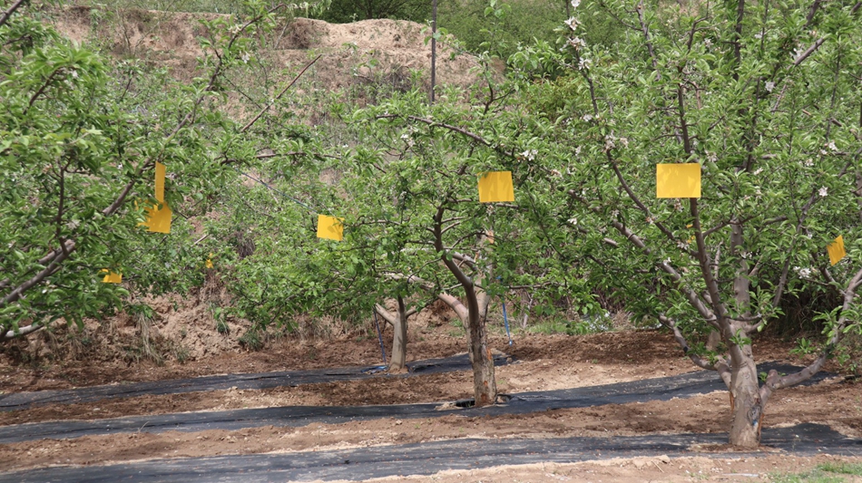 “在這1000畝的果園提質(zhì)增效里面,進(jìn)行了鋪地膜、懸掛粘蟲板、安裝殺蟲燈等措施,有效解決了蘋果的增產(chǎn)增收問題”。安伏鎮(zhèn)四級(jí)主任科員劉小林介紹道。