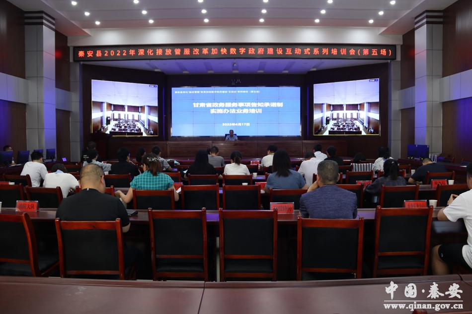 為深化“放管服”改革,進(jìn)一步優(yōu)化營(yíng)商環(huán)境,更好服務(wù)市場(chǎng)主體。6月17日,秦安縣舉辦2022年深化“接放管服”改革加快數(shù)字政府建設(shè)“互動(dòng)式”培訓(xùn)會(huì)(第五場(chǎng)),培訓(xùn)學(xué)習(xí)了《甘肅省政務(wù)服務(wù)事項(xiàng)告知承諾制實(shí)施辦法》?h直相關(guān)部門(mén)業(yè)務(wù)骨干、縣政務(wù)服務(wù)事項(xiàng)告知承諾制工作專(zhuān)班業(yè)務(wù)人員共計(jì)30余人參加培訓(xùn)。