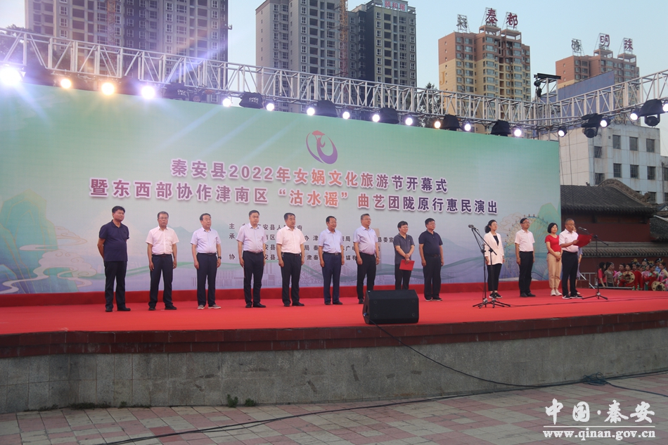 6月19日晚,秦安縣2022年女媧文化旅游節(jié)開幕式暨東西部協(xié)作津南區(qū)“沽水謠”曲藝團(tuán)隴原行惠民演出在興國文化廣場隆重舉行。津南區(qū)文旅局黨委書記袁景,秦安縣委書記周濟(jì),縣人大常委會主任李寬余,縣政協(xié)主席楊喜春等四大組織領(lǐng)導(dǎo),縣直部門負(fù)責(zé)人,鄉(xiāng)鎮(zhèn)干部及群眾代表參加開幕式。
