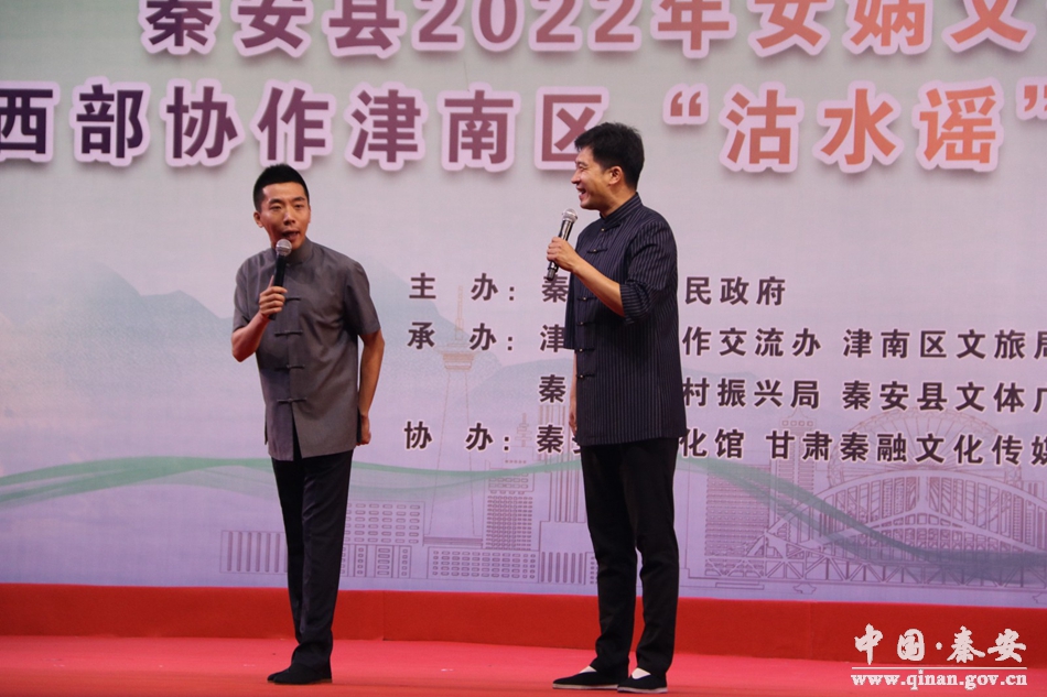 當(dāng)晚,秦安縣興國文化廣場上霓虹閃耀,熱鬧非凡。開幕式由縣委副書記姚建國主持;縣委常委、常務(wù)副縣長張俊義作了致辭;周濟(jì)宣布秦安縣2022年女媧文化旅游節(jié)開幕式暨東西部協(xié)作津南區(qū)“沽水謠”曲藝團(tuán)隴原行惠民演出正式開始。