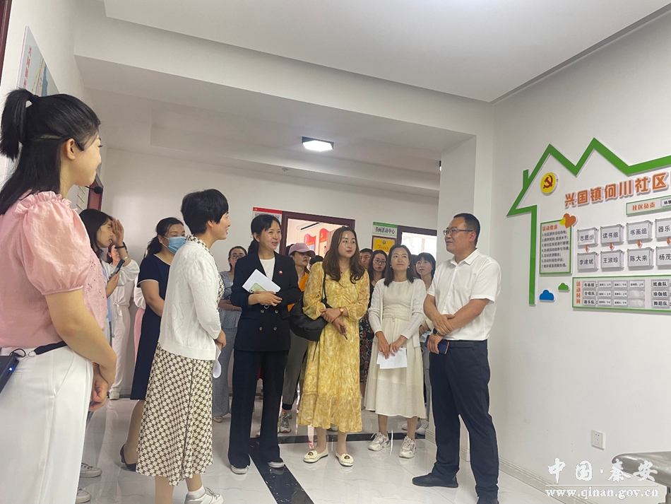 6月17日,靜寧縣婦聯(lián)觀摩交流團30余人來到秦安縣興國鎮(zhèn),就何川社區(qū)基層婦聯(lián)組織建設(shè)工作開展觀摩交流。秦安縣委副書記曹晶瑜,縣委常委、興國鎮(zhèn)黨委書記董文海一同觀摩。