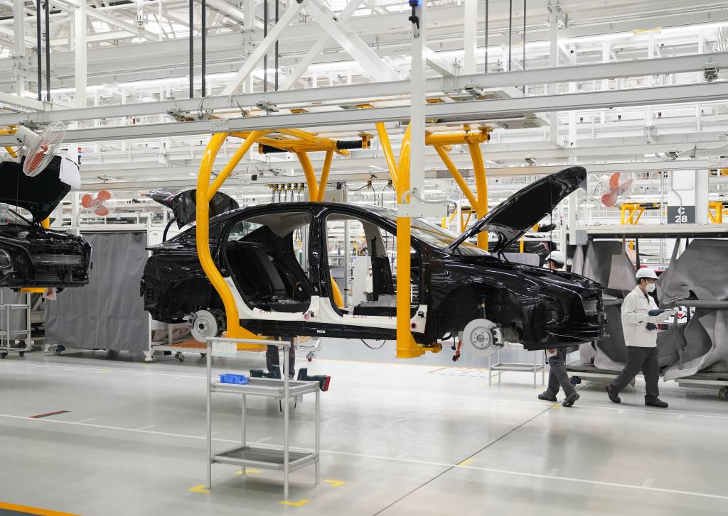 4月22日,在一汽集團(tuán)紅旗繁榮工廠,工人在進(jìn)行生產(chǎn)作業(yè)。新華社發(fā)