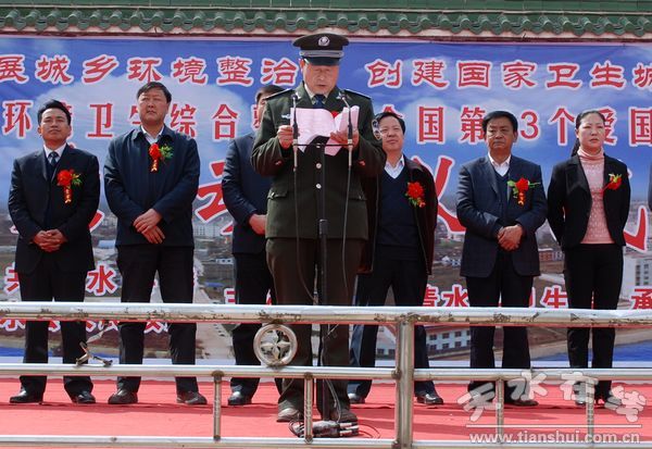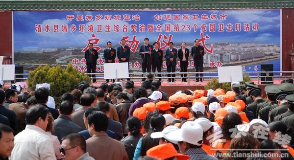 。ㄇ逅h委對外宣傳辦公室 楊兆康 張建新)4月7日下午,清水縣在政府廣場舉行全縣城鄉(xiāng)環(huán)境衛(wèi)生綜合整治暨全國第23個愛國衛(wèi)生月活動啟動儀式,動員全縣各鄉(xiāng)鎮(zhèn)、各部門、企事業(yè)單位及廣大干部職工、群眾積極開展城鄉(xiāng)環(huán)境衛(wèi)生綜合整治暨全國第23個愛國衛(wèi)生月活動,鞏固省級衛(wèi)生縣城”創(chuàng)建成果,精心打造文明、整潔、干凈、衛(wèi)生的天水后花園。