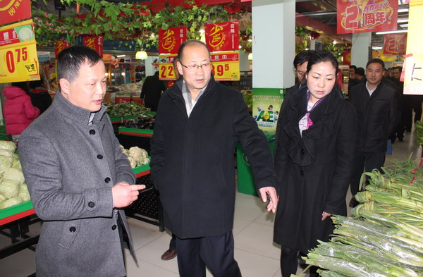 (在縣家樂超市檢查考核工作)