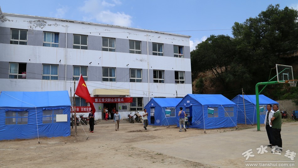 (村民在臨時(shí)安置點(diǎn)遠(yuǎn)門鄉(xiāng)中學(xué))