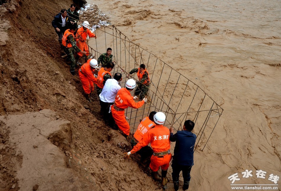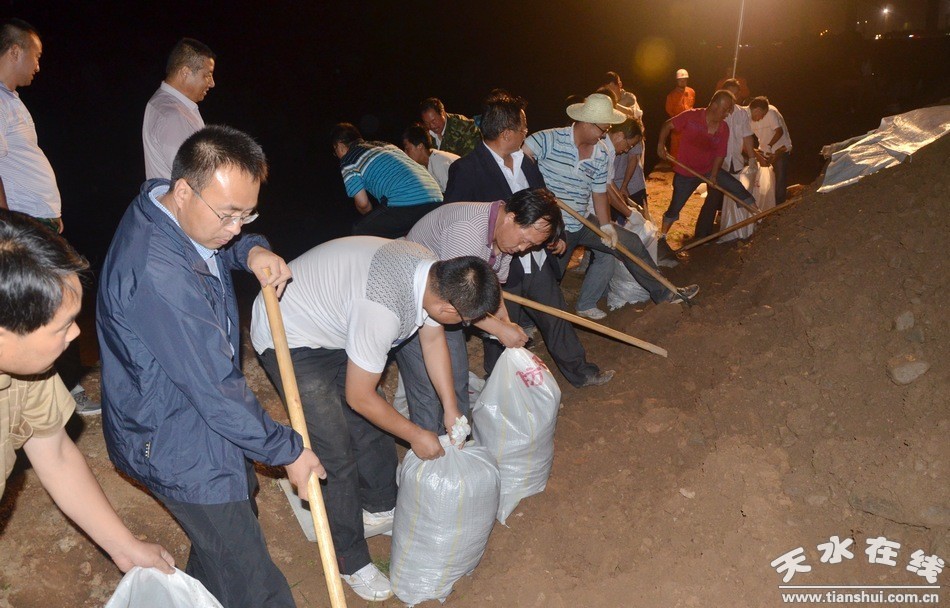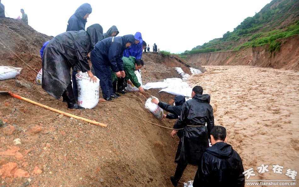 由于持續(xù)降雨造成境內(nèi)大中小河流全面上漲,全縣河堤66處9.6公里遭遇河水沖毀。其中牛頭河、南道河、后川河水位上漲超歷史最高水文資料記錄,沿線河堤受損十分嚴(yán)重。為了防止洪水沖垮河堤再次引發(fā)重大災(zāi)害,避免出現(xiàn)河堤崩塌險情,防止次生災(zāi)害發(fā)生,清水縣干部職工連夜冒雨奮戰(zhàn)在防汛搶險一線,對已經(jīng)出現(xiàn)河堤坍塌和重大隱患的南道河、牛頭河、白駝河、后川河、樊河等河堤危險段,實施晝夜搶修,積極開展引水分流、河堤加固、河道疏浚工程,加快搶險救災(zāi)進度,確保行洪安全。