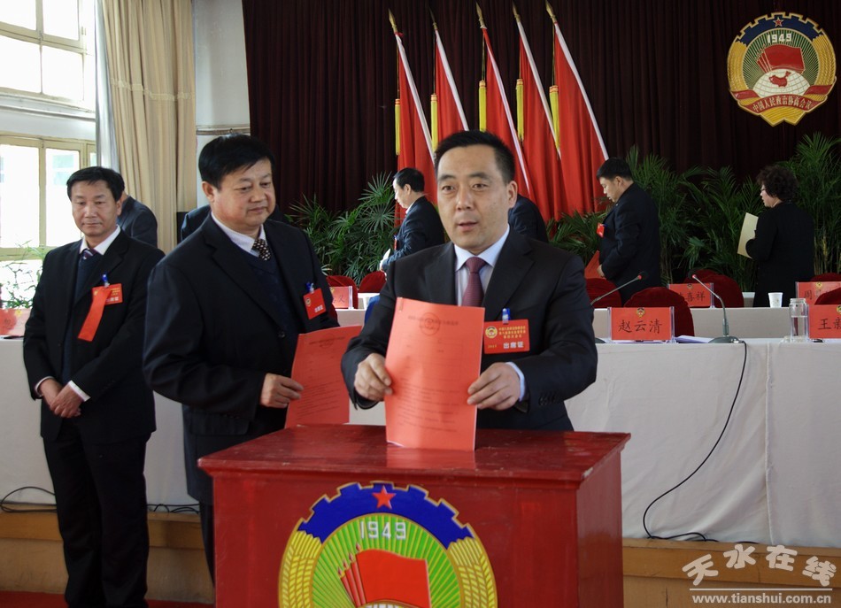 2月13日下午, 清水縣政協(xié)八屆四次會議舉行第二次全體會議,進行大會選舉,選舉縣政協(xié)主席、副主席、秘書長。會議應(yīng)到委員125名,實到 115 名,超過全體委員的三分之二,符合《選舉辦法》規(guī)定。