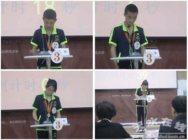 2015年5月11日至12日,第三屆“中國漢字聽寫大會(huì)”甘肅賽區(qū)選拔賽在西北師范大學(xué)舉行。清水縣新城中學(xué)代表天水市參加比賽,經(jīng)過2天激烈爭(zhēng)奪,清水縣新城中學(xué)的同學(xué)們發(fā)揚(yáng)“團(tuán)結(jié)協(xié)作、文明禮貌、永不言敗”的精神,在全省14個(gè)市州代表隊(duì)名列前茅,取得了團(tuán)體二等獎(jiǎng)的好成績(jī)。
