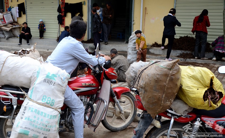 6月3日下午,清水縣隴東鄉(xiāng)剛下過一場(chǎng)雨,一路上,我們看到一對(duì)又一對(duì)的牲口馱著沉重的包裹,穿梭在水泥路上,這引起了我們的好奇,一打聽,原來馱的是藥材,趁著下過雨家里沒事做,就將前兩天挖好的藥材拉到集市上出售,多么勤勞的人民!