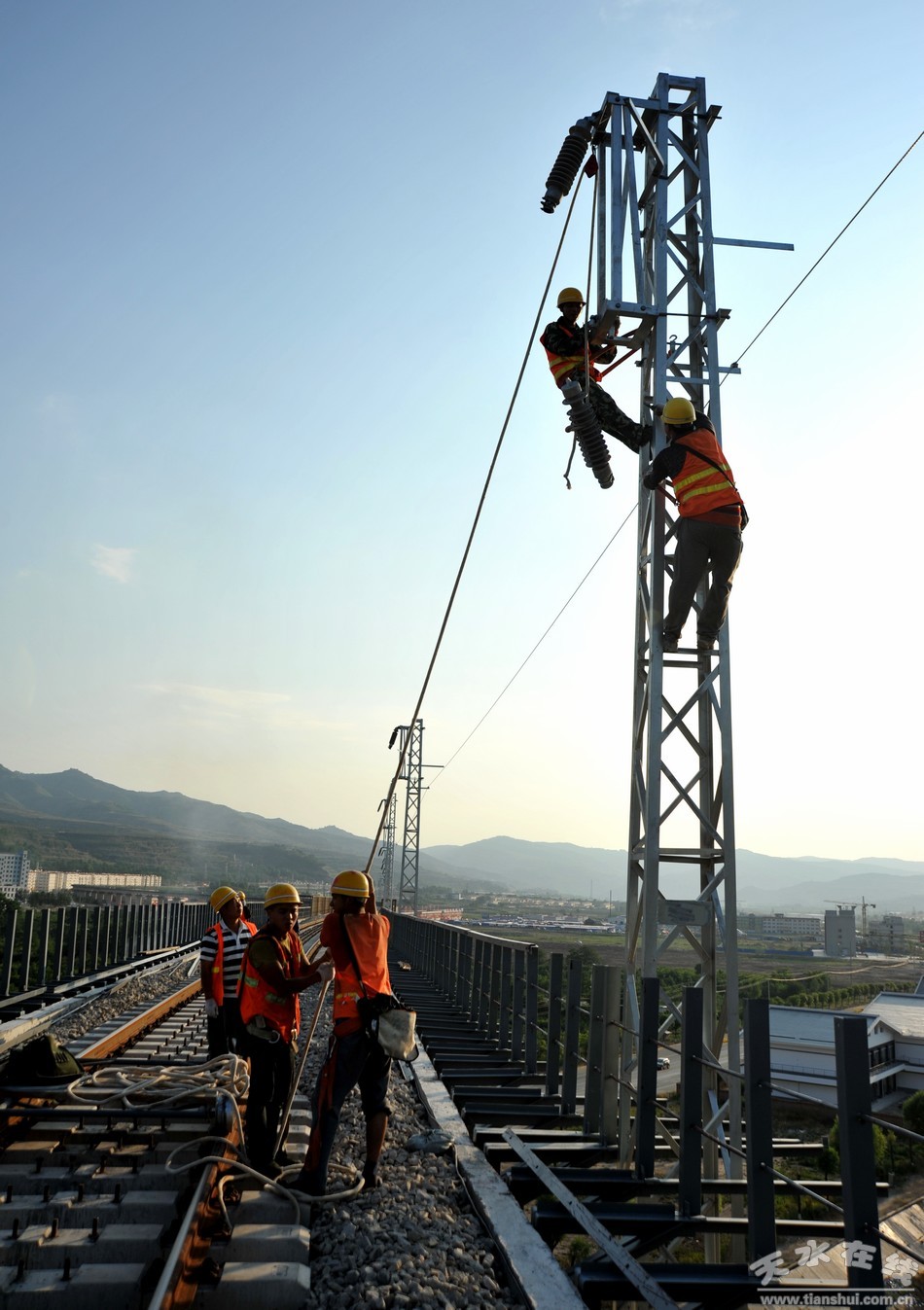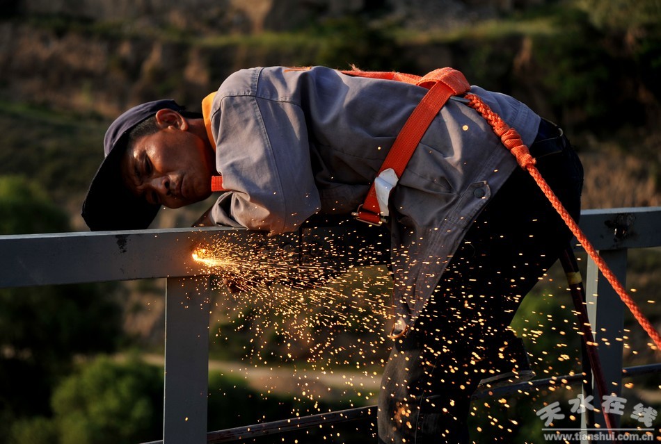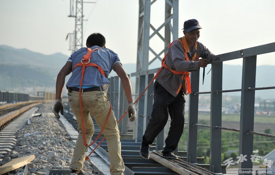 近日,筆者在天平鐵路清水特大橋上看到,工人們正在高空焊接鐵道護(hù)欄,目前天平鐵路清水段建設(shè)工程已進(jìn)入了收尾階段。