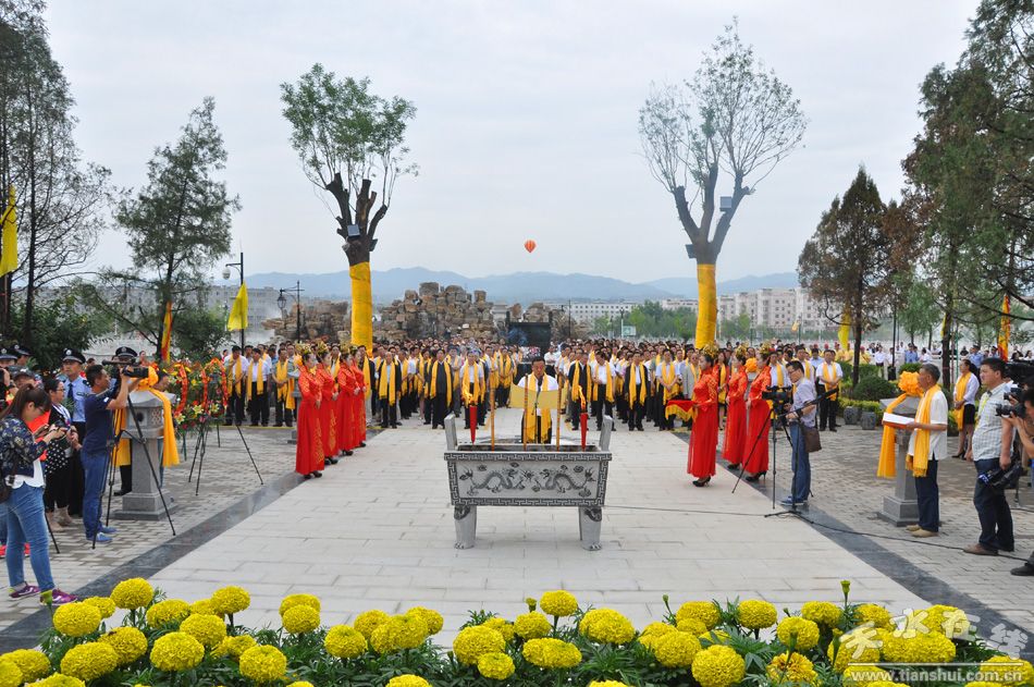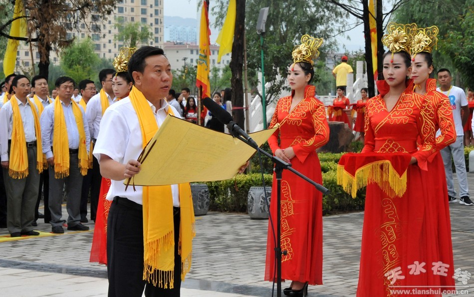 王銳、柴金祥、楊維俊、蔣曉強(qiáng)、李建中、王正茂、王子生、張建杰、安志宏、何道華、白曉玲等天水市四大組織領(lǐng)導(dǎo)、省市相關(guān)部門(mén)負(fù)責(zé)人、五縣兩區(qū)領(lǐng)導(dǎo)、部分投資企業(yè)負(fù)責(zé)人出席落成典禮。落成典禮儀式由甘肅省軒轅文化研究會(huì)會(huì)長(zhǎng)靳來(lái)福主持。