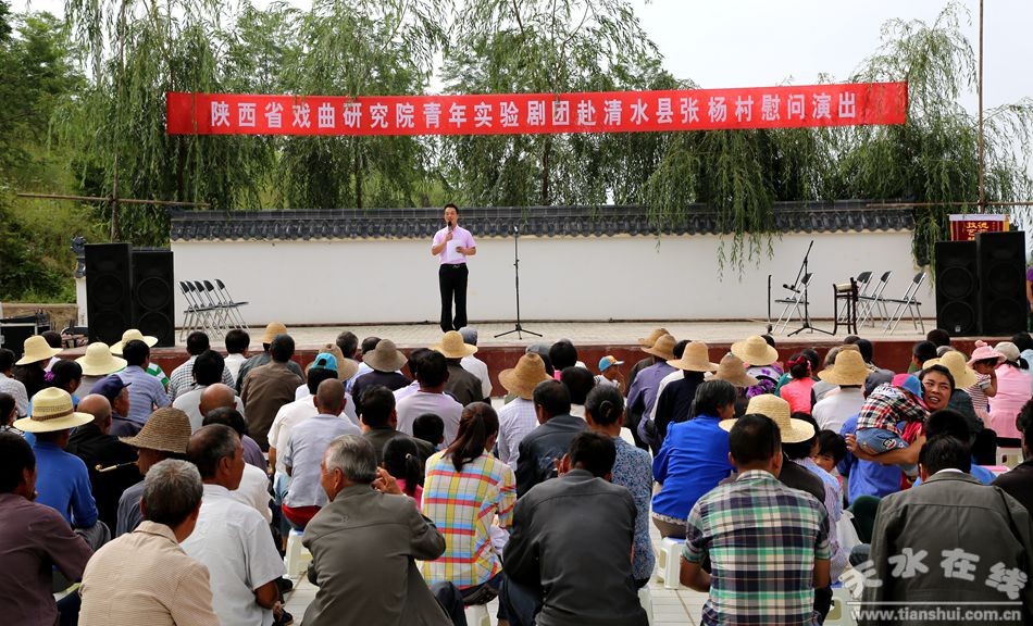 7月11日上午,陜西省戲曲研究院青年實(shí)驗(yàn)劇團(tuán)赴清水縣永清鎮(zhèn)張楊村開展雙聯(lián)慰問演出。國家一級(jí)演員李小鋒等著名秦腔藝術(shù)家為張楊村及周邊村莊廣大群眾送上了一場(chǎng)場(chǎng)精彩的秦腔表演,受到了廣大群眾的高度喜愛和贊揚(yáng)。