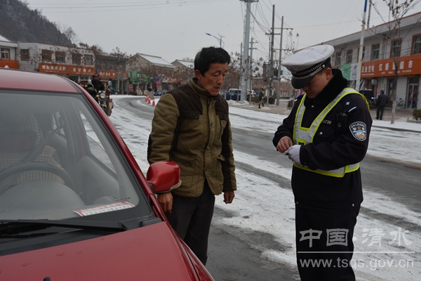 受強(qiáng)冷空氣影響,12月17日至18日,清水縣境內(nèi)出現(xiàn)降雪天氣,低溫雨雪導(dǎo)致全縣境內(nèi)大多數(shù)路段出現(xiàn)結(jié)冰、交通受阻情況,給廣大群眾生活和出行造成較大影響。為切實(shí)做好強(qiáng)降溫雨雪天氣下的交通安全工作,12月18日上午,縣委常委、常務(wù)副縣長(zhǎng)牛永禎帶領(lǐng)縣安監(jiān)局、交警隊(duì)、運(yùn)管局等部門主要負(fù)責(zé)同志頂風(fēng)冒雪深入一線檢查指導(dǎo)強(qiáng)降雪天氣下的道路交通安全工作。