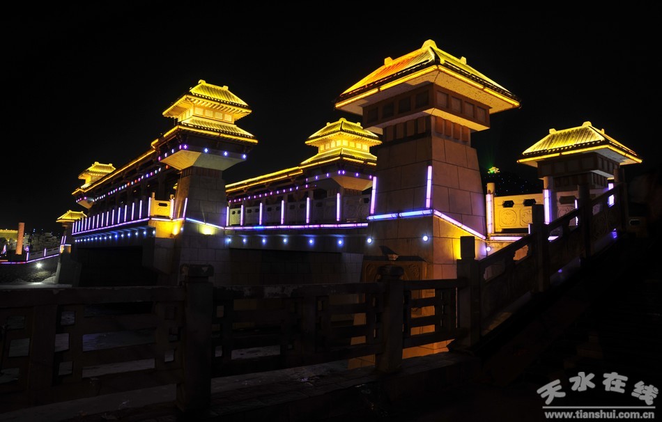 華燈初上,一盞、兩盞,一層、兩層,一排、兩排,高的、低的,遠的、近的,五顏六色的霓虹燈,閃爍著,變換著,不斷向遠方延伸,匯聚成了一支支流光溢彩的河流。節(jié)日期間,道路兩旁紅紅的燈籠,將每一條小巷、每一條胡同映照得通紅通紅,里里外外一片喜慶,站在高處俯瞰,清水縣城沉浸在一片火紅的海洋里,到處洋溢著一種欣欣向榮的氣象。
